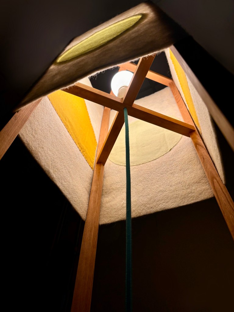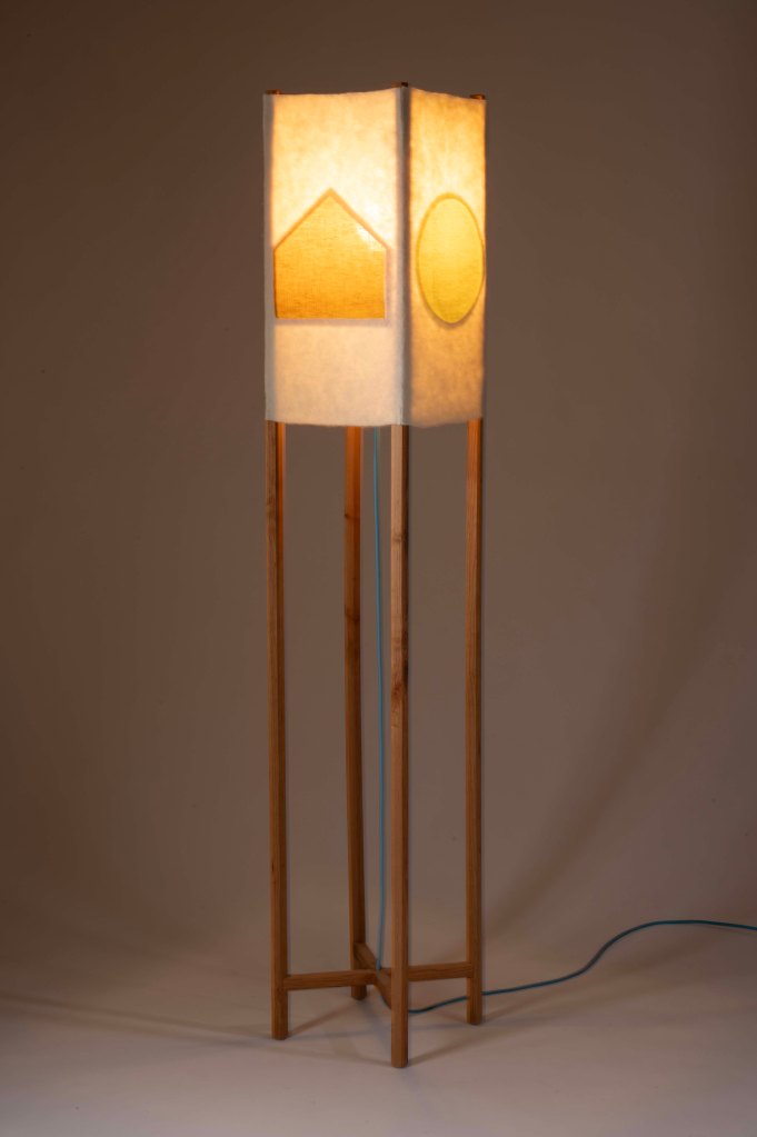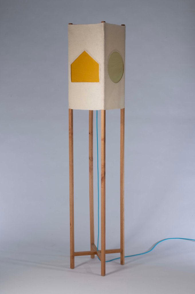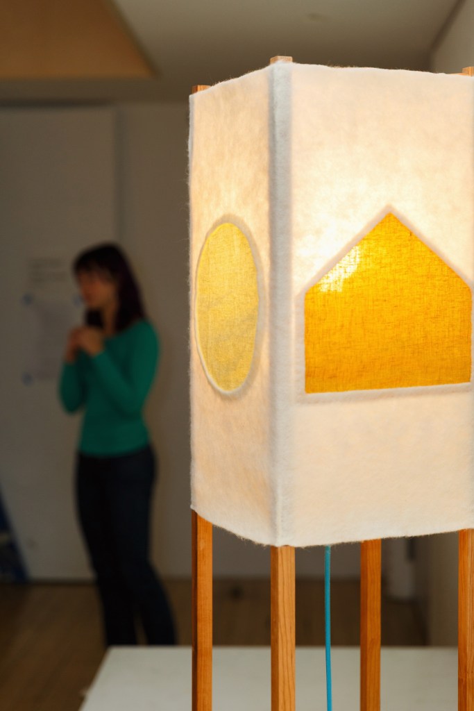 In designing her lamp, she put herself in the mind and scale of a child, who she remembers feel the important responsibility of discovering hidden uses in otherwise “serious” places. She calls back on the form of the Phillip Exeter Academy in the hidden structure of the lamp, revealed for the children who inevitably will look beneath the shade, and curiously dissect and understand its beautiful construction.
