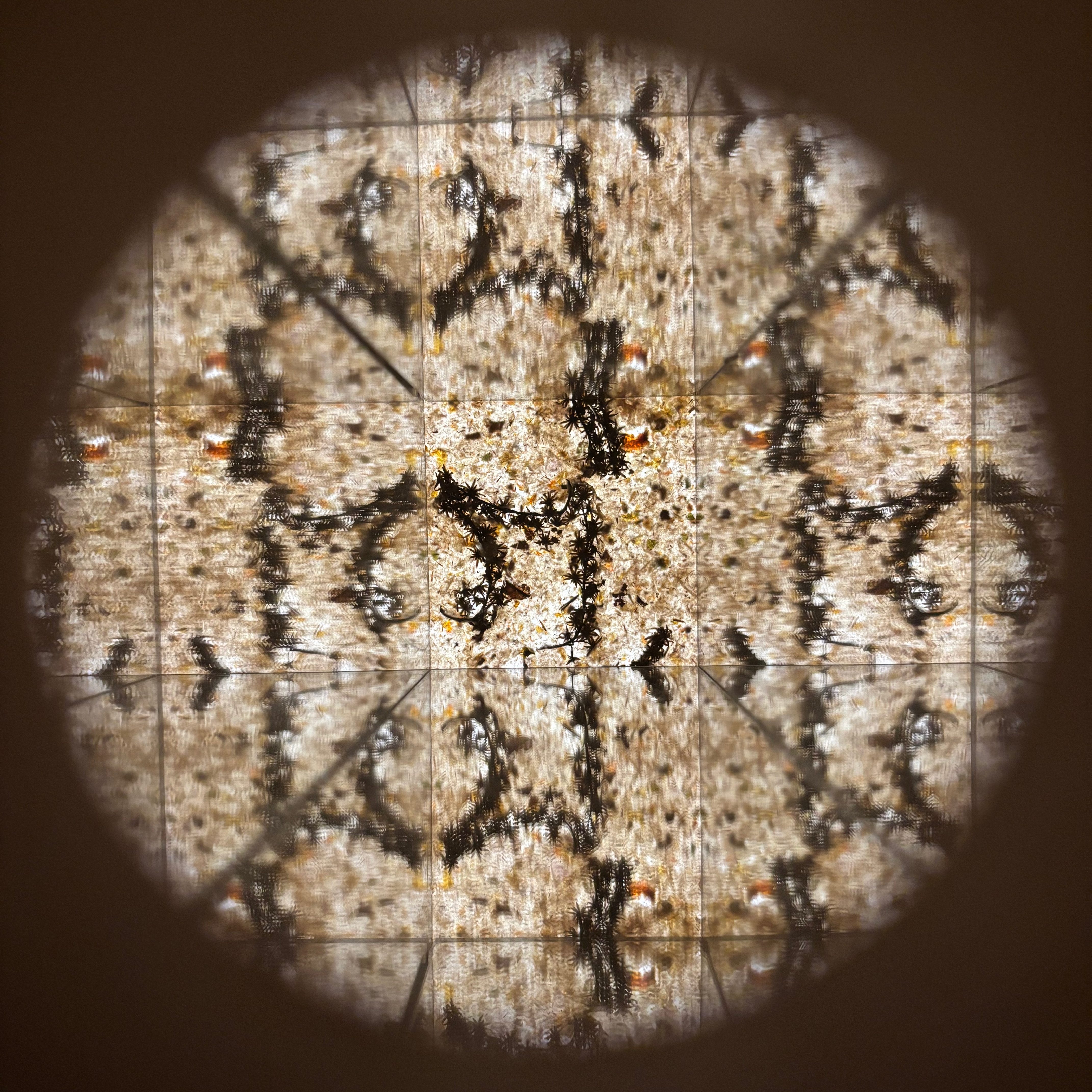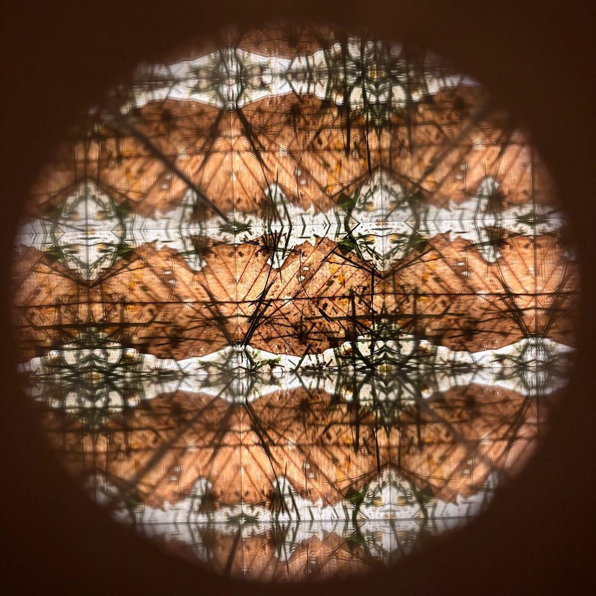 Claire connected her early memories of quietly observing the nature in her local park, Powers Farm, to the experience of peering through a kaleidoscope, where zooming in on the tiny worlds that secretly surround us can reveal visually fascinating patterns and structures.